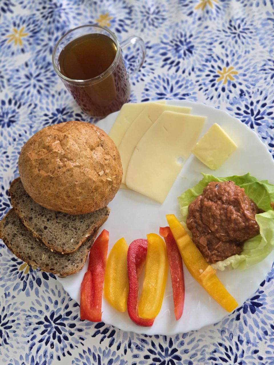 Gzik7 z dodatkiem szczypiorku, podany na sałacie (30g/5g/10g)(46kcal)/ML. – ser wegański6 30g/ /2./3. – Twarożek bez szczypiorku podany na sałacie7  (30g/10g)(72kcal)