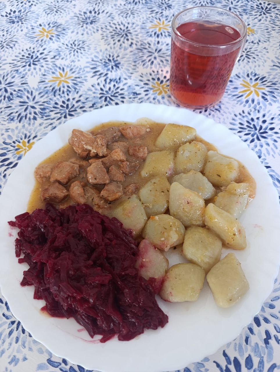 Gulasz wieprzowy1,7 (350g, w tym 100g mięsa)(309kcal) / ML. – ze śmietaną sojową6 zamiast zwykłej /2./3. – gulasz drobiowy1,7 350g