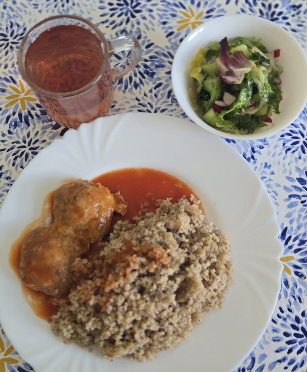 Pulpety z indyka w sosie pomidorowym1,3,7 (225, w tym 100g mięsa)(343kcal) / ML. / 3. – sos na bazie śmietany sojowej6