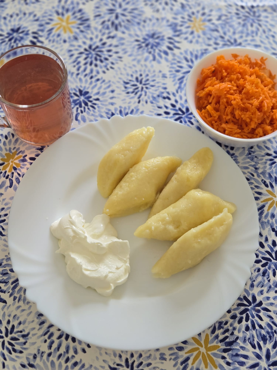 Pierogi leniwe (300g) ze śmietaną i cukrem (50g/3g)1,3,7 (378kcal) /ML./3. – zabielana śmietaną sojową8zwykłej / 6. –na mące pełnoziarnistej (300g), bez cukru