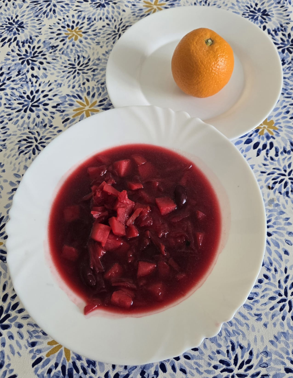 Barszcz ukraiński7,9 (300 ml) (204 kcal) /2./3. – barszcz czerwony bez fasoli (300ml)(190kcal) /ML. / 3. – śmietana sojowa6 zamiast zwykłej