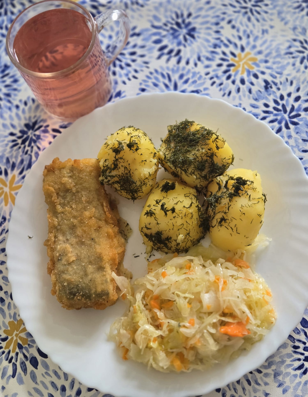 Śledzie w sosie tatarskim3,4,7 (220g, w tym 80g śledzia)(291kcal) / ML. – zamiast śmietany zwykłej śmietana sojowa6 /2./3. – zamiast śledzia dorsz po grecku 4