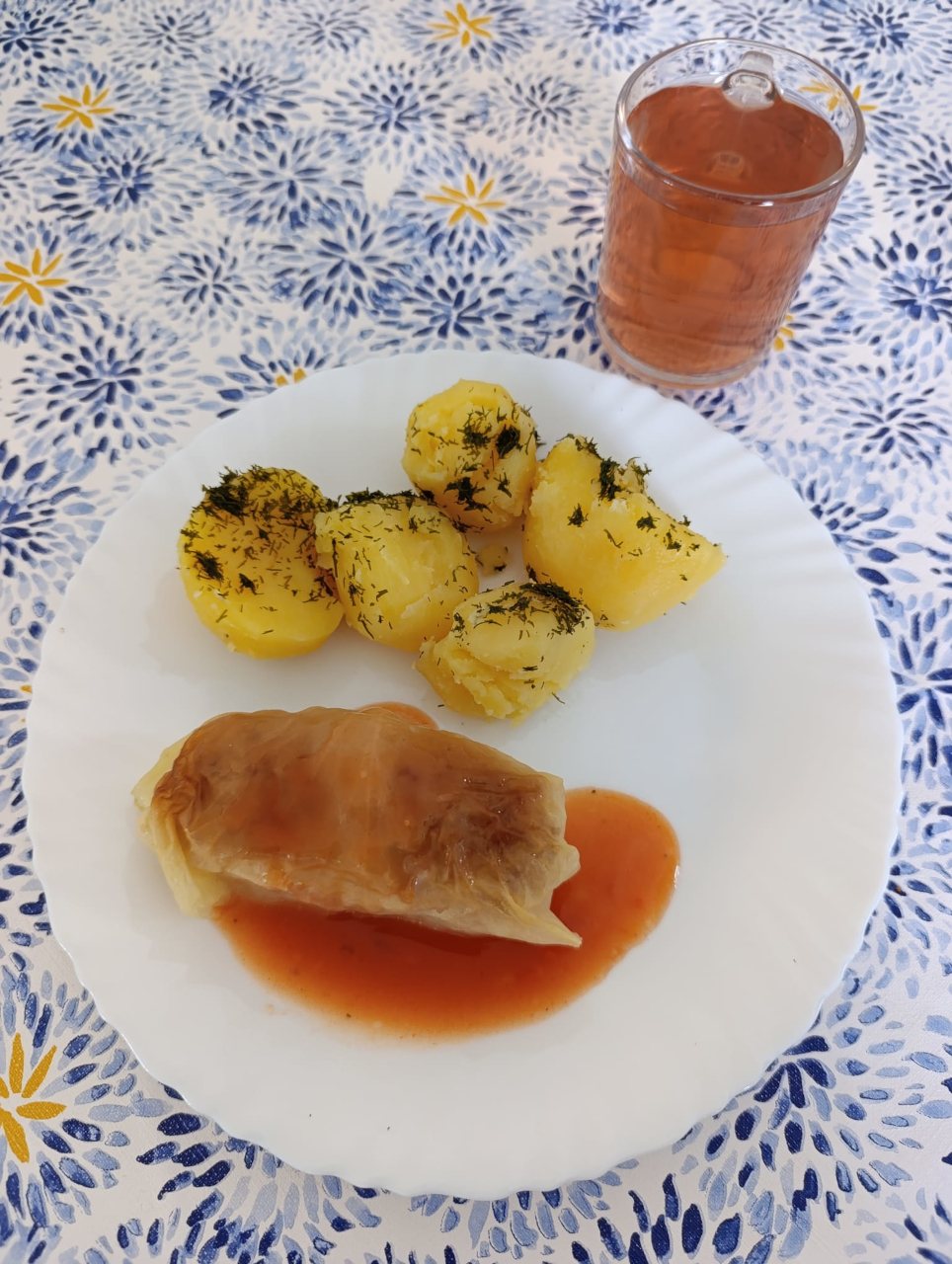 Gołąbki z sosem pomidorowym1,7 (200g/ sos 60g)(483kcal)  / ML. – sos zabielony śmietaną sojową6 /2./3. – Pierś z indyka duszona w sosie pomidorowym (mięso 100g/sos 50g) z marchewką zasmażaną  (120g)(78kcal)