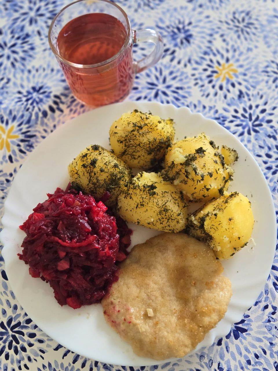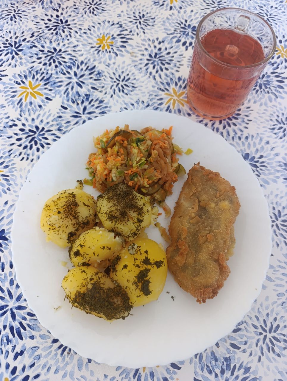 Surówka z pora, jabłka, marchewki i ogórka kiszonego (120g)(71kcal) / 2./3. – Marchew gotowana na gęsto 120g (43kcal)